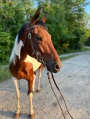 Scooby Doo is a bay Tobiano gelding stands around 15.3 hh, and 4 years old, and he is everything that one should be!! He has that super smooth effortless 4-beat gait, the Hollywood good looks, that amazing cowboy color, he’s super gentle and quiet as well! Scooby is perfect for the whole family; he is safe enough for grandma and grandpa and gentle enough for anyone! My 7 year old son has trail rode him countless miles, crossed busy highways, lead the pack and followed way behind as well. He does fine in big or small groups. Scooby Doo has been trail ridden throughout Alabama, Mississippi, Kentucky, and Tennessee. He will handle any steep slopes, crosses water, crosses logs, goes through mud and ditches as well. He is easy to ride and catch, clip, bath, tack-up, load, and handle. Scooby has been exposed to all kinds of wildlife such as deer, turkey, and other animals like cows or dogs and will go anywhere that he is asked. He has a great attitude about whatever he is asked to do. I invite everyone to just come see Scooby Doo and let him speak for himself! He will be your next riding partner! He is up-to-date on all vaccinations, coggins and a vet exam.