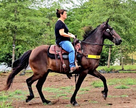 Ladoux is a super smooth trail eating machine that has been over, though, and around almost everything. He has a wonderful loose-reined trail walk, nice canter, and an outstanding saddle gait. He will back easily and has a good mouth.