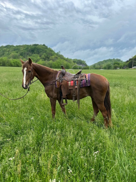 Annie is an amazing, registered 12-year-old TWH mare with excellent bloodlines! She stands at the perfect height of 14.3 hands and has a strong, sturdy build. Annie has been trail ridden all over Kentucky and Tennessee and does fantastic! She crosses water and logs with ease and handles steep terrain like a pro. She’s as “country broke” as they come! Meaning she’s not fancy, but she’s a good, solid, all-around trail horse who’s gentle and a joy to ride. She stands great for saddling, grooming, and bathing. She’ll pack saddle bags and can even be ridden bareback with just a halter! Annie is super gentle and just about anyone who can sit in the saddle will get along with her. She’s the first one to meet you at the gate and has a very loving personality. She gets along great with other horses and doesn’t act like your typical mare. Annie has also been around dogs and other farm animals and doesn’t mind them at all. She has raised babies in the past and would be sound to breed again. She’s traffic-safe and can be ridden along busy roads without batting an eye. Annie has more “whoa” than “go”. She doesn’t have a big motor like many TWHs, making her an easygoing and relaxing trail ride. She loads, hauls well, and is an easy keeper. If you have any questions about Annie, please feel free to give me a call! Shipping is available at the buyer’s expense.