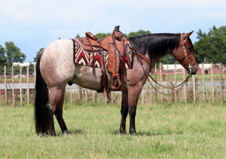 Here is a cowboy lookin’ roan that will go do anything you want to horseback. Kipper is hands down a phenomenal gelding that will go cut a cow, run a Cowhorse pattern, rope in the arena and out, and is always gentle and quiet minded. Kipper is extremely cowy with a fancy style, low sweep, and is athletic enough to hold the toughest cow from the herd. He is a monster stopper and has fast turnarounds. Kipper has lots of outside miles. He’s great in the sorting pens, will pull and hold anything dallied to the horn, can really cover the ground, and goes right where you point him. Kipper has had several roped on him out of the box. Would make a great switchender. Perfect in the box, runs flat, great rate and easy to ride. Would make an exceptional rope horse futurity contender. Would make an exceptional break away or calf horse. Kipper is as fancy of young horse as you will find. Whether you want to go show him in the Cutting, Cowhorse, Versatility, and roping or make a top ranch horse out of this guy, you can’t go wrong. Kipper is a total sweetheart with a stellar disposition, as honest as a day is long, and just an all around fun horse to own.NOTE: Contact us only on our website or #;