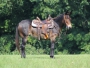 Here is a mule that we have done it all with from packing on trails, to going on camping trips, and she’s been used to check cows and fences. I’ve ridden her though town, down the highway, by the gas station, down sidewalks, across bridges, up steps… she will go anywhere you ask! She’s been a pleasure to have around and is always eager to please! Diva has a very good handle! She will spin both ways, side pass, back with easy, slide stop and lope out of her tracks! In addition to having a nice lope she has a very smooth ground covering foxtrot when asked for it. She will walk slow and easy with quarter horses or move on out and keep up with a gaited horse. We have used her several times around our cattle, roped a few calves off of her, done some herding and loaded a couple trucks with her