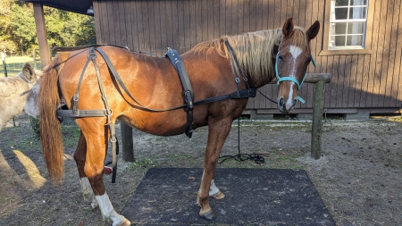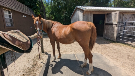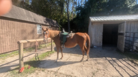 Jenga is an athletic 23-year-old Mustang mare and easy keeper. She trailers well, is good with her feet, fly mask, and fly spray. Loves burros and other horses. She had her teeth floated 2/2025. Her feed is straight orchard, and a cup of Equalizer pellets am and pm. Jenga\'s trot is smooth and consistent. She responds to voice commands to go from walk to trot and back. She is good on trails, especially with other horses. Jenga enjoys a place where she has shade from the sun and can get out of the rain. Jenga does well opening gates under saddle and herding the burros. Believe she would do well with cattle as she can turn on a dime. Jenga lets you walk up to her in the pasture to put her halter on. We have owned Jenga since 2021 and are at a place where we need to downsize our equine family. Looking for Jenga\'s new forever home and a person that is a confident rider to enjoy and appreciate her great walk and trot. She has been ground driven with a breast pull harness. The Biothane harness is brand new and can be purchase separately. Will share videos via text for folks interested. Offers welcome. Thank you, Darlene 303-619-3783