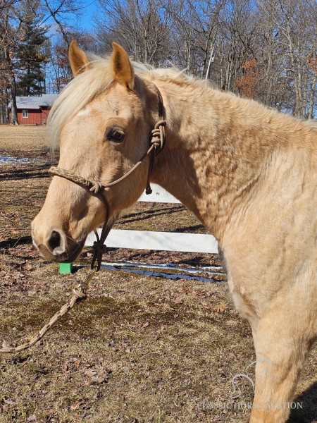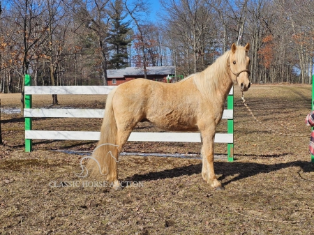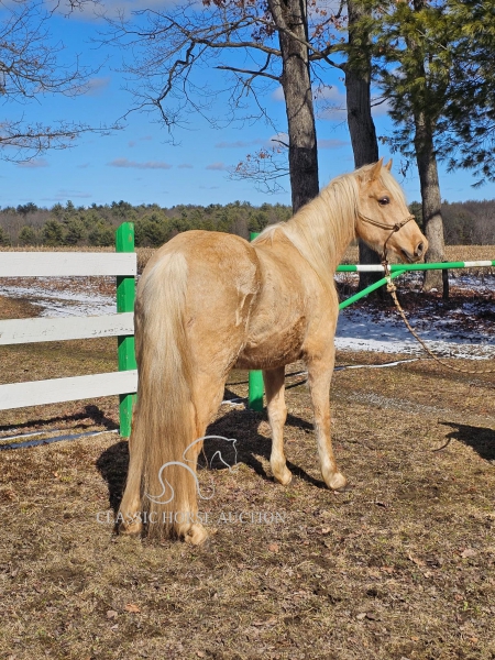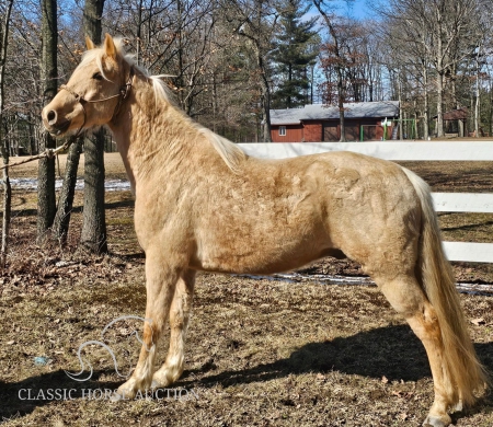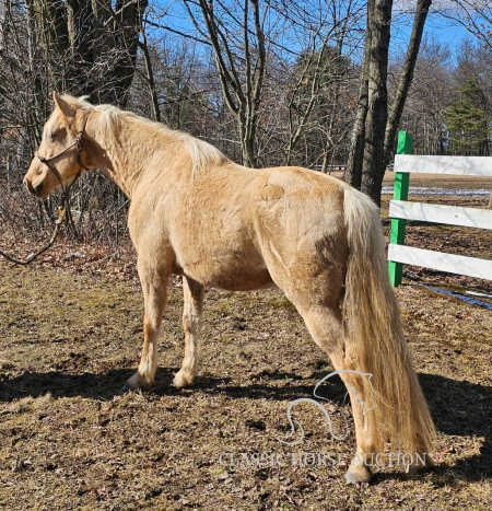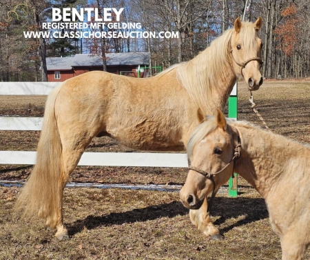WWW. CLASSICHORSEAUCTION. COM THIS HOSE IS LOCATED: Tionesta, PA BUY NOW: 10,000 CURRENT BID: 3500 To view health docs, see consignor’s info, how to schedule a meeting to try it out, visit our site.. https://classichorseauction.com/auctions/bentley-2/ VIDEO >> https://youtu.be/QghS_rRVXww Gorgeous Palomino! Bentley is a registered Missouri Fox Trotter (MFT), a 7-year-old gelding standing at 15.1 hands. He’s looking for his special person to take him on trail rides, compete in trail challenges, and enjoy whatever adventures come their way! Bentley was professionally started as a 3-year-old and received a refresher at 5. He side-passes, has a handy turnaround, is hobble-trained, and will drag a tarp. He ties all day, stands well for the farrier (currently barefoot), naturally gaits, and also lopes while picking up the correct leads. Bentley would be best suited for an intermediate rider. He just needs more miles and wet saddle pads. He hasn’t been used much in the last two years, but he crosses creeks, steps over logs, and will ride all day. He’s ready to find his person! Tionesta, PA Emily 615-542-4564 Nationwide Shipping Assistance Available Classic Horse Auction 931-224-2968