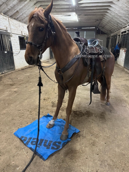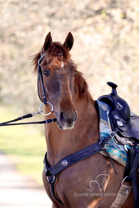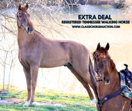 WWW. CLASSICHORSEAUCTION. COM THIS HOSE IS LOCATED Shelbyville, TN SKIP THE AUCTION PRICE: 10000 CURRENT BID: 3500 To view health docs, see consignor’s info, how to schedule a meeting to try it out, visit our site.. https://classichorseauction.com/auctions/durango/ VIDEO >> https://youtu.be/uwmWBteRVbg “Deal” is the perfect student! A willing, fast learner ready for his forever owner to hit the trail or the rail. Maybe both! Raised and bred to be the ideal all-around Walking Horse, “Deal” is the kind of horse you can show on Saturday and hit the trails on Sunday. Excellent Bloodlines: Sire: Arms Deal for Real Dam: Kim’s Extra Judybob Started the right way, “Deal” is easy to handle, extremely loving, and curious. He was gelded at 18 months, so he NEVER has shown ANY stallion tendencies. He loads, clips, and stands in cross-ties. He parks out and stands still for mounting, even from a mounting block. He crosses logs, creeks, and large bodies of water without hesitation. He thrives on challenging trails and can carry you all day long with plenty of stamina and lung capacity. He handles rough terrain like an experienced veteran and has two years of trail experience. His natural gait is smooth and comfortable, keeping you happy in the saddle for hours. Shelbyville, TN Emily 615-542-4564 Classic Horse Auction 931-224-2968