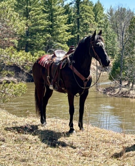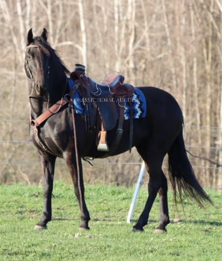 WWW. CLASSICHORSEAUCTION. COM THIS HOSE IS LOCATED Hesperia, MI To view health docs, see consignor’s info, how to schedule a meeting to try it out, visit our site.. https://classichorseauction.com/auctions/alexis-z-hutz/ VIDEO - https://youtu.be/N6rx90R-d1o ++++ SKIP THE AUCTION PRICE AVAILABLE ++++ Alexis Z Hutz a.k.a Lexus 10 year old 1/2 Friesian 1/2 Morgan Mare. 15.1 hands tall Rides & Drives! Beginner Friendly both ways! Lexus is what I consider a perfect first horse for an advanced beginner or a perfect match for a Grandma that still wants to ride/drive but wants something sane and NOT spunky. She’s really an all-around family-type horse; everyone can enjoy her and have fun with her. She’s easy to get along with NO bad habits or vices. She does NOT spook easily. If I had to describe her in one word, it would be “sensible.” Every time I ride/drive her, that word pops up in my mind. She’s just a very down-to-earth, no-fuss, no-worry type of horse. She has been there and done that, and she’s got an old soul, although she’s still young and has lots of years ahead of her. For driving, she is absolutely SAFE. She drives herself, literally. And if she could, she would hitch herself. She stands like a perfect statue for harnessing, hitching, getting on or off the cart, and for stop signs. It would be hard to find a horse that stands still better than this mare. And when I say she drives herself, let me explain. I just read a book and leave the reins loose while she’s driving down the back roads where there’s not much traffic, and she will move over on her own for oncoming cars. She’s fine with all sorts of traffic as well, such as cars, trucks, motorcycles, semis, etc. I’ve had dogs come out of the yard into the road charging, and she just ignores them. There’s really not much that phases her. She’s been driven in much bigger, busier cities than the one in the video, so she’s used to a lot heavier traffic. Another thing that impresses me about her is, whether it’s under harness or saddle, she WILL go anywhere you point her. She’s not like most horses that have to stop and think about it, or you may have to persuade them. She will just do it with no hesitations. She stands excellent for the farrier and for tacking and mounting. She will leave home alone or separate out on the trail. She can ride front or back, will cross anything logs, bridges, water, etc. and doesn’t mind wildlife. She gets along with other horses, loads right in the trailer and backs right out, and hauls great. She’s easy to catch and friendly. She’s an easy keeper. She’s very stout, so she can easily carry a bigger rider than me and has no problem pulling a heavier load. She’s been ridden and driven by all ages, from the kids up to grandparents. She’s just a very safe, reliable, and sensible mare that takes care of her humans. It would be hard to rattle her cage. She’s also had foals before and is a good mom. She comes up to date on her vaccines, dewormings, Coggins, and vet check. You’re more than welcome to come see her in person. Hesperia, MI Emily 615-542-4564