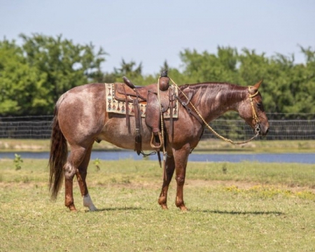 Go cut a cow, rope a steer, run a reining pattern, do all the ranch chores or pleasure ride, Bailey will be your number one go-to mount every time. NOTE: Contact us only on our website or #; https://www.horsesranch.com/ , www.horsesranch.com/ , https://www.horsesranch.com/horses-for-sale , drop me a line/chat; (956) 2I5 - OI4O for more information.. WE DO SHIP. We have amazing offers now! Purchase 3+ Horses and we will ship all for FREE. All our horses come with a 30 days Money-Back Guarantee! No matter the job or task at hand, this gorgeous roan gelding will be your best partner! As cowboy looking as he is, he doesn’t require a cowboy to ride him. He’s honest and safe for any level of rider and always gentle to saddle and go even with substantial time off. Which makes him super handy in the sorting pens and fun to use on the ranch. You can rope a steer in the pasture, step off and he will hold strong from the horn and work the rope. He willingly side passes to open all the gates and stands quietly ground tied if needed. Bailey has fancy spins, long stops and easy lead changes.
