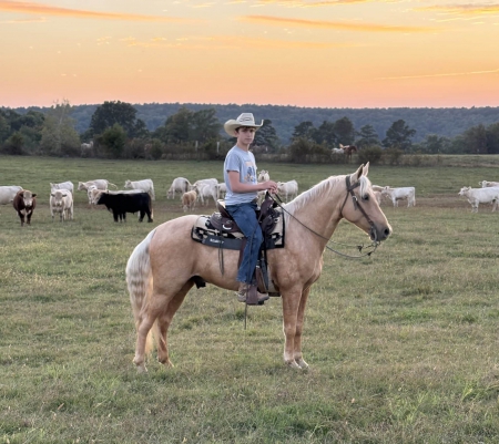 Wonder Boy is an attractive 6-year-old dappled palomino gelding. He is a registered Missouri Foxtrotter who was born, raised, and started right here on our farm. Wonder Boy is named after the Arkansas Tech University Wonder Boys, where I graduated from College. We’ve been breeding, raising, starting, and finishing the training of Missouri Foxtrotters for over 25 years. My wife and I, along with our four Children, are the owners of Boston Mountain Fox Trotters and Horse Camp, nestled in the Boston Mountain Range of the Ozark Mountains in Arkansas. BREEDING: Wonder Boy has the perfect pedigree in the Missouri Foxtrotting horse industry. He is a grandson of the great Southern Sunrise and a grandson of World Grand Champion Prince Jester. Both his Grand sires are Breyer Model Horses. His Sire Southern Sunrise’s Romeo is no stranger. He was the 2009 Amateur World Grand Champion. His Dam was never shown, but we have video footage available of her; she was the own daughter of WGC Prince Jester and Youth WGC Cassey’s Missouri Star. Missouri Cassey Jones sired both of his grand dams. Missouri Cassey Jones is known as the broodmare sire; his daughters have produced more World Champions than any other. His Pedigree consists of 9 World Champions, 6 World Grand Champions, and 2 Reserve World Grand Champions. His Grand sires production numbers #1 Southern Sunrise – 788 babies #2 Missouri Traveler E – 528 babies #3 Mack K’s Yankee- 489 babies #9 Rex’s Golden Touch- 365 babies Wonder Boy has the sought-after disposition that his Sire and Grandsire have passed on. Southern Sunrise’s Romeo has sired Trail Horses in 20 U.S. states and the country of Israel.