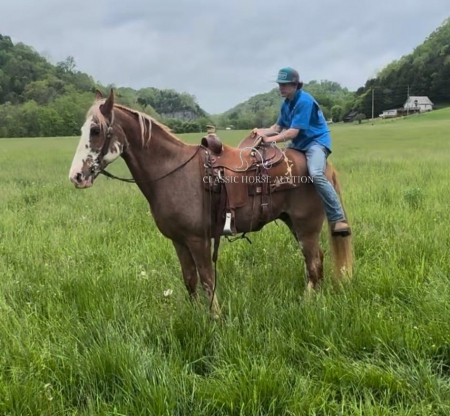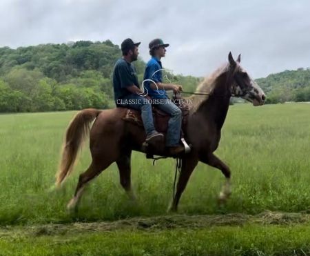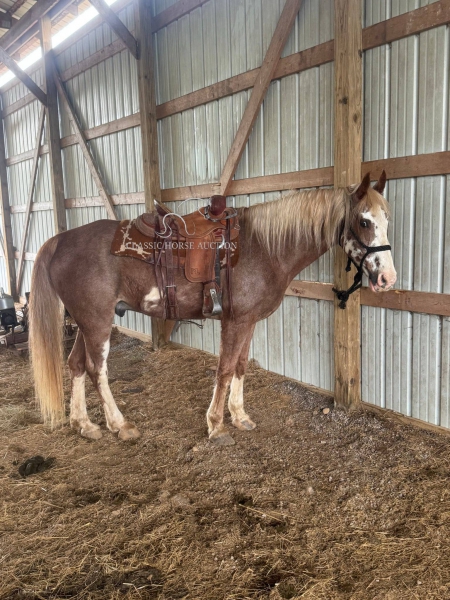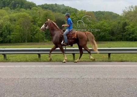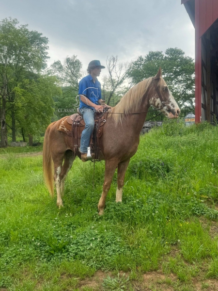 WWW. CLASSICHORSEAUCTION. COM THIS HOSE IS LOCATED Celina, TN To view health docs, see consignor’s info, how to schedule a meeting to try it out, visit our site: https://classichorseauction.com/auctions/sammy/ VIDEO: https://youtu.be/GNs60XAw2MA ++++ SKIP THE AUCTION PRICE AVAILABLE ++++ Sammy is an outstanding 10-year-old TWH gelding! He stands a solid 16.1 hands tall and has a big, sturdy build. His flashy, beautifully patterned coat makes him a real head-turner! Sammy has been trail-ridden all over Tennessee and handles every ride with ease. No problems at all. He’s an excellent trail gelding who crosses logs, goes through water, and tackles rough terrain like a pro. He’s as broke as they come! Anyone can ride this beautiful gelding! Sammy has a great handle: he neck reins, backs up, and gaits like a champ. He’s a true all-around horse that anyone would enjoy riding. He stands calmly for saddling, grooming, bathing, and the farrier. Sammy will even ride bareback in just a halter, alongside busy highways with cars flying by without batting an eye! Sammy is always the first one to meet you at the gate with his gentle, loving personality. He’s super, super broke. If you can sit in a saddle, you can ride him. He gets along well with other horses and has also been around dogs, farm animals, and heavy machinery, nothing phases him. He’s been ridden around traffic and never spooked, even in busy town streets. Sammy is an easy-going gelding with just the right amount of speed to enjoy the trails. Wherever you point his head, he’ll go! No fuss, no hesitation! He’s easy to load and unload from the trailer, an easy keeper, and requires no special care. He’s the relaxing, dependable trail horse everyone wants, and he’s got the looks, too! If you have any questions about Sammy, please feel free to contact me. Shipping is available at the buyer’s expense. Celina, TN Emily 615-542-4564
