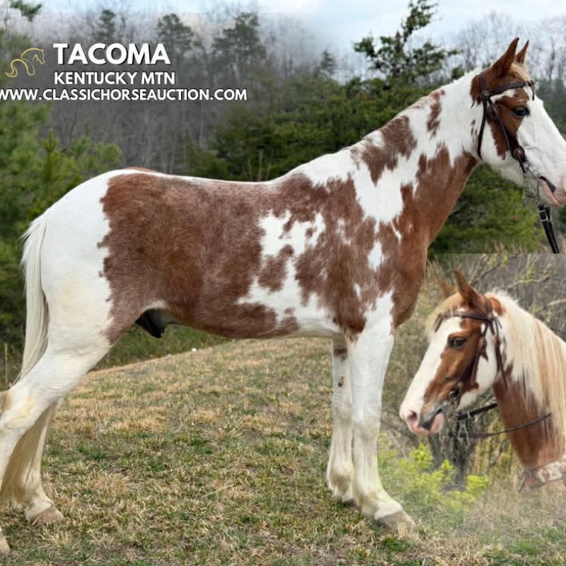 WWW. CLASSICHORSEAUCTION. COM THIS HORSE IS LOCATED: Whitley City, KY Buy Now Price: 10000 To view health docs, see consignor’s info, how to schedule a meeting to try it out, visit our site www.classichorseauction.com Tacoma is a 7-year-old grade Kentucky Mountain gelding standing around 14.3hh. He is keg shod and rides great in big groups or small. He will ride in the front, back, middle, or alone. Tacoma has been trail ridden throughout Alabama, Mississippi, Tennessee, and the great state of Kentucky. He handles steep slopes, crosses water, and will go over anything you put in front of him, including mud and ditches. Tacoma is easy to catch, clip, bathe, tack up, load, and handle. He has been exposed to all kinds of wildlife such as deer and turkey, as well as livestock like cows and dogs. Tacoma is up to date on Coggins, health certificate, and vet exam. He has received the Equine Core vaccines, including rabies, West Nile, EEE, WEE, and tetanus. I invite everyone to come see Tacoma and let him speak for himself. Tacoma will be your next riding partner. Whitley City, KY Emily 615-542-4564