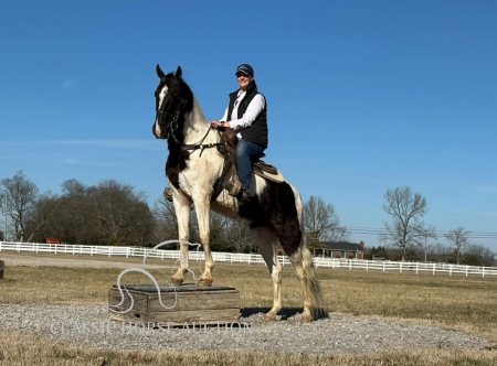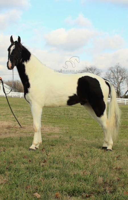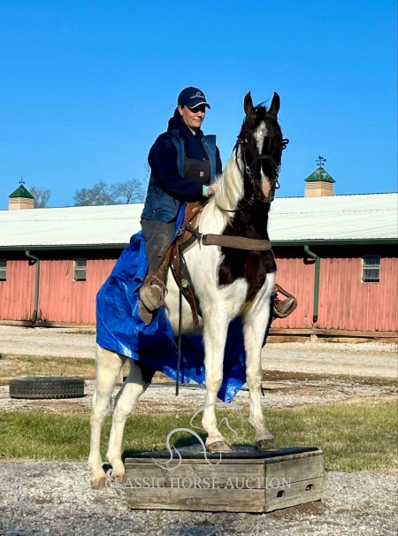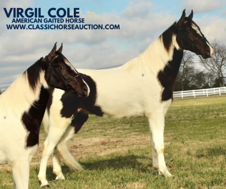 WWW. CLASSICHORSEAUCTION. COM THIS HOSE IS LOCATED: LEWISBURG, TN CURRENT BID: 4000 BUY NOW: 12000 To view health docs, see consignor’s info, how to schedule a meeting to try it out, visit our site.. https://classichorseauction.com/auctions/virgil-cole/ VIDEO >> https://youtu.be/0LTunXLiZjA Virgil Cole is a sharp-looking 4-year-old registered American Gaited gelding, standing at 15.2 hands. This striking tobiano isn’t just about looks he’s built for the trails and has the brains to match. He has been trail ridden extensively in the rugged mountains of Tennessee, where he carefully places every step, making him a safe and steady partner in even the toughest terrain. He’ll confidently ride in the front, middle, or back of the group with NO PROBLEMS! Virgil is traffic-safe and completely unfazed by bicycles, ATVs, farm equipment, and all kinds of livestock. With excellent ground manners, he is easy to handle, stands quietly, and is a pleasure to be around both in and out of the saddle. His smooth, natural gait makes long rides effortless and enjoyable. Whether you’re looking for a dependable mountain horse or a stylish, level-headed trail partner, Virgil Cole is ready to go! LEWISBURG, TN Emily Elgin 615-542-4564 Nationwide Shipping Assistance Available Classic Horse Auction 931-224-2968
